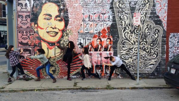 Check out this improvised movement with some original Shepard Fairey street art from when the MoCo members were in Cincinnati for a master class and performance of Doug Varone and Dancers.